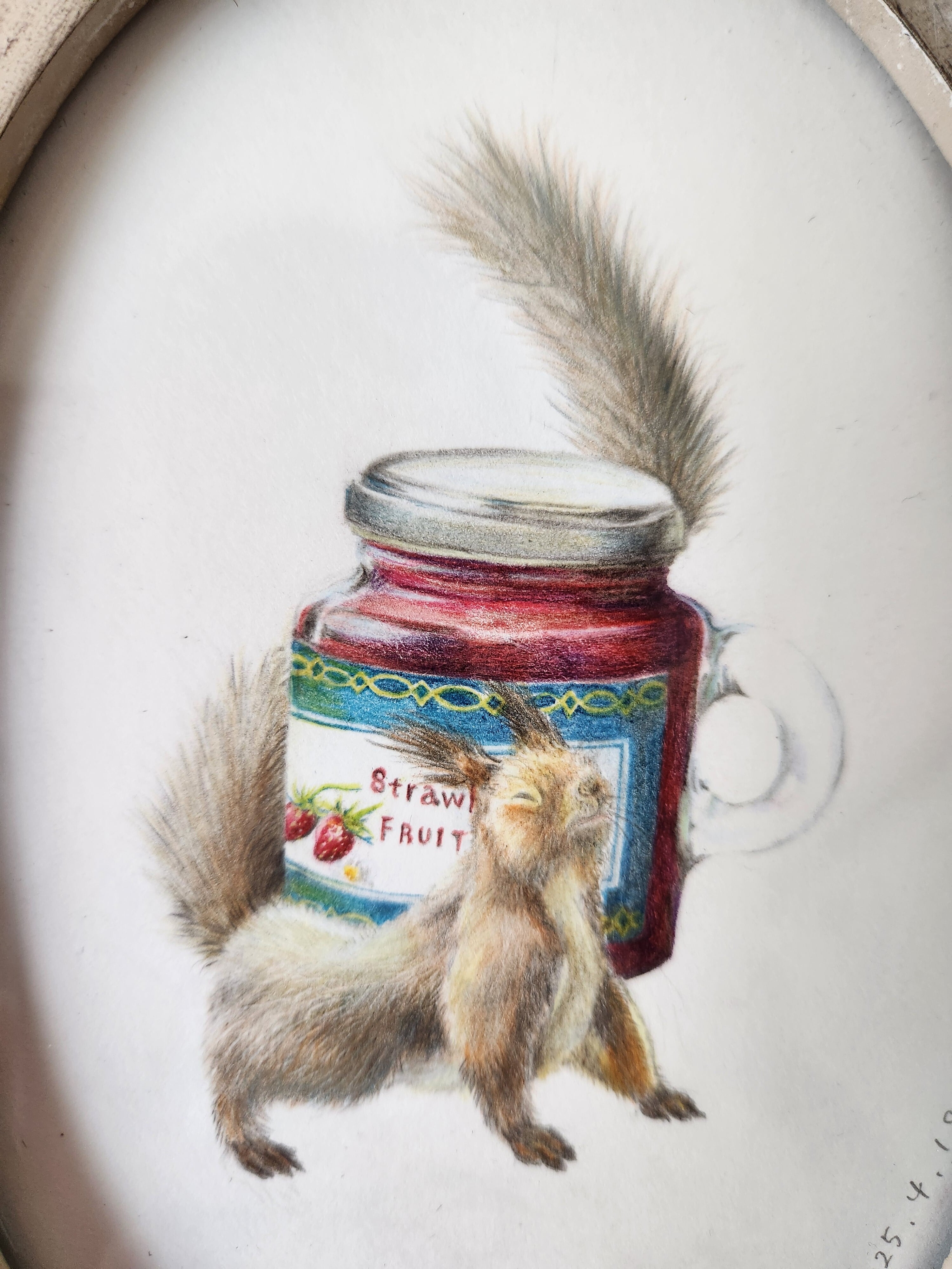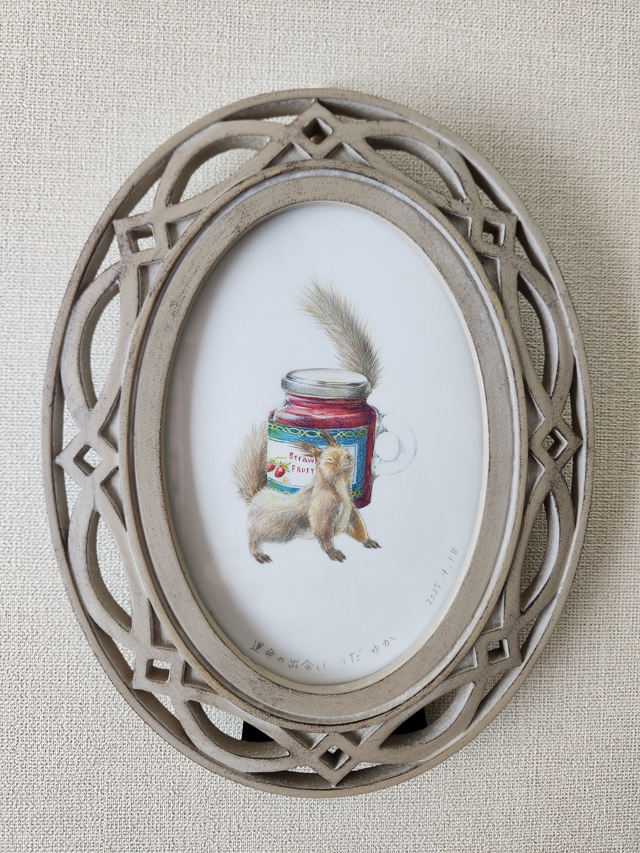 運命の出会い【色鉛筆画オーバル103×143mm 額縁付き】