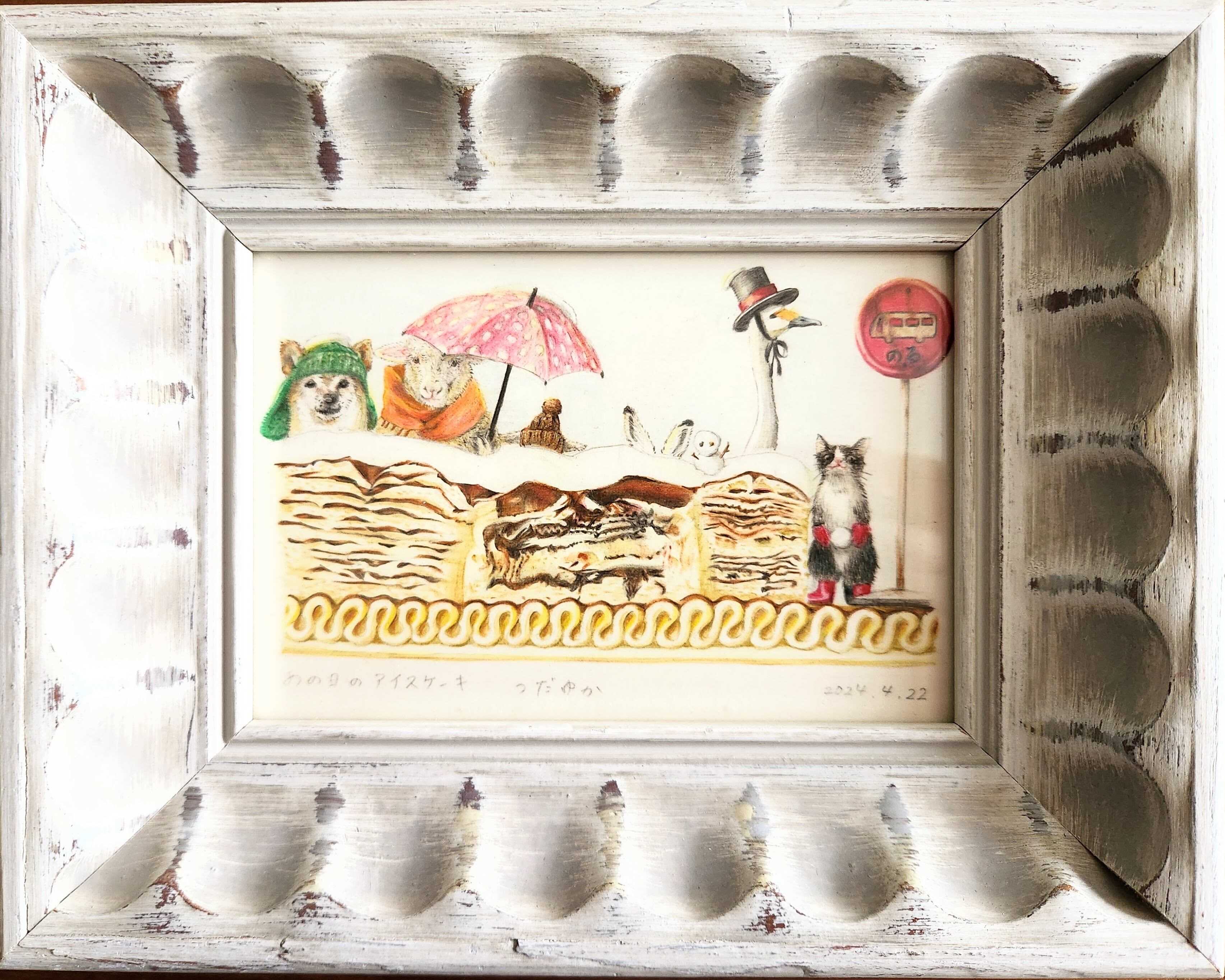 【フレーム付】あの日のアイスケーキ (色鉛筆画はがきサイズ)